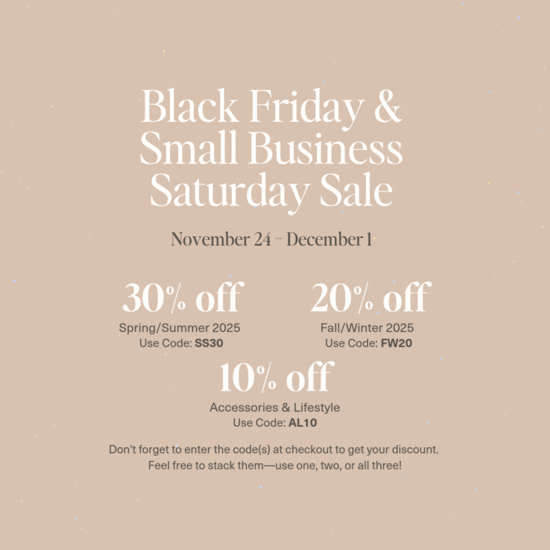Shop our Black Friday and Small Business Saturday Sale November 24th - December 1st.